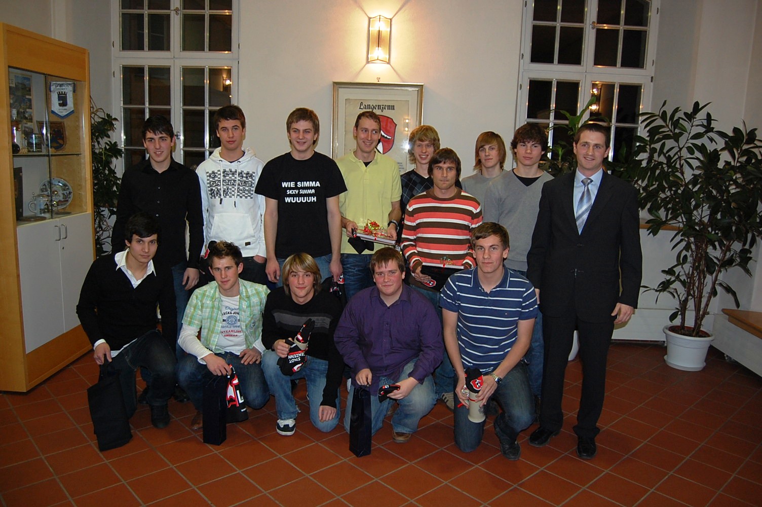 A-Junioren bei der Sportlerehrung der Stadt Fussball   12. Februar 2009 lobbl Schreibe einen Kommentar 77 Besucher Aufgrund ihrer tollen Leistung wurde unsere A-Juniorenmannschaft mit den Trainern Christian Gall und Daniel Stenzel bei der Sportlerehrung der Stadt Langenzenn ausgezeichnet. Unser Bild zeigt 1. Bürgermeister Jürgen Habel zusammen mit unseren Jungs