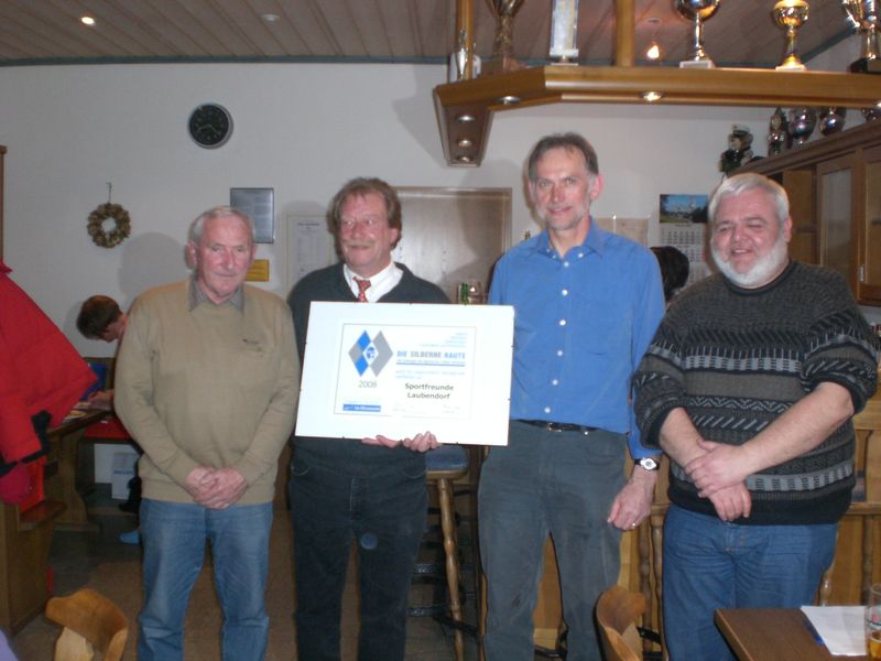 SFL zum 2. Mal mit der silberen Route ausgezeichnet Allgemeines   28. März 2009 lobbl Schreibe einen Kommentar 79 Besucher Anlässlich der Jahreshauptversammlung konnten wir aus den Händen des Kreisehrenamtsbeauftragten Willy Leipold zum 2. Uebergabe der 2ten silberenen Raute Mal die Auszeichnung mit der silberen Route entgegennehmen.