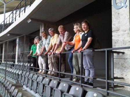Wie heute mittag im Rewe-Markt zu erfahren war, ist dort der Verkauf von Mineralwassern heute stark gestiegen. Einige brauchen wohl die entsprechende Verdünnung 🙂 Verletzungen gab es diesmal bei der Tour erfreulicherweise nicht zu beklagen (Helmut Sand wurde festgebunden), allerdings sollen manche Leberwerte stark angestiegen sein. DieSchnappschüsse auf der rechten Seitezeigen einen Teil der Gruppe im Olympiastadion sowie einen Blick auf das schönste Leichtathletikstadion Deutschlands 🙂
