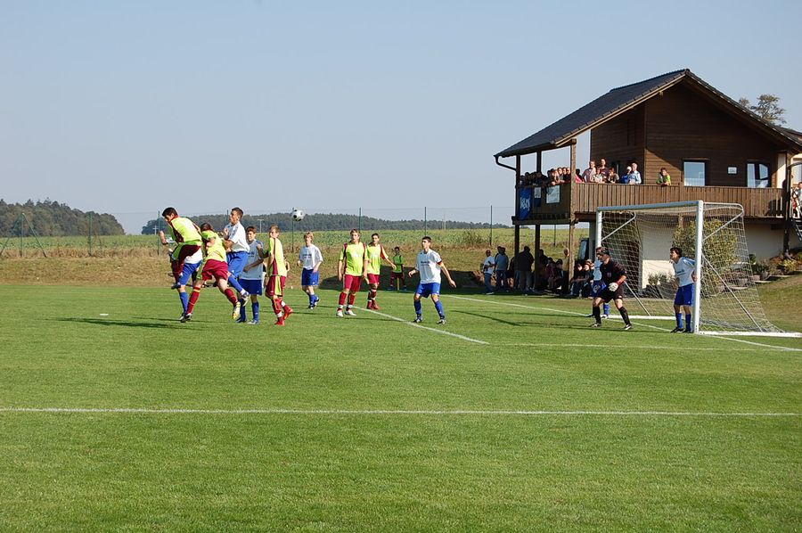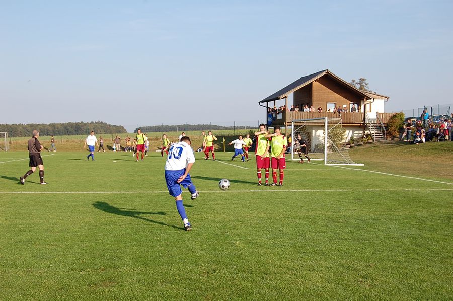 Laubendorfer Abwehr läßt kein Tor zu Marco Bauer beim Freistoss, der sein Ziel jedoch knapp verfehlte