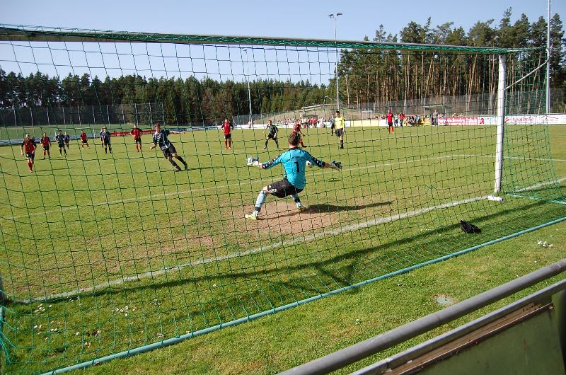 Frank Hallwas hält den Elfmeter in letzter Sekunde und verteidigt das 7:1
