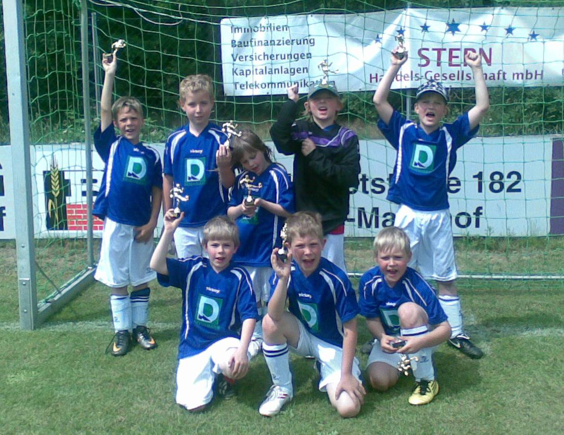 Mit einem Feiertag bedingtem Rumpfteam, verstärkt durch die G-Spielerin Annika, zeigten uns die Spieler des ESV Flügelrad Nbg. gleich die Grenzen auf. Gegen die Jungs von Jahn Schweinau und dann gegen ASV Vach fanden wir zurück in unsere Spielweise und lieferten im Halbfinale gegen die Truppe des TSV Altenberg eines unserer besten Saisonspiele ab, welches wir durch ein Elfmeterschießen für uns entscheiden konnten. Im Endspiel, wiederum gegen ESV Flügelrad, bestätigten diese Jungs ihre Leistung vom Eröffnungsspiel und wir gratulierten ihnen zum Turniersieg. Ausklingen liesen wir diesen schönen Tag im Eiscafé Carlo (siehe Foto).1. ESV Flügelrad, 2. SF Laubendorf, 3. SG Quelle, 4. TSV Altenberg, 5. ASV Vach, 6. Jahn Schweinau, 7. SF Großgründlach, 8. ASV Vach2 Christian und Hardy