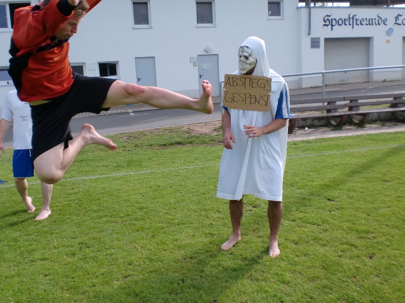 ein Bild sagt mehr als Tausend Worte. Nach dem Spiel zeigen die Spieler der 1.Mannschaft nochmal wie das Abstiegsgespenst vertrieben werden konnte !