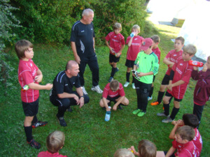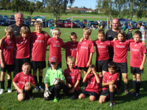 Schon die große Autoanzahl ließ erahnen, wie viele Mannschaften kommen würden. Das elitäre Feld der teilnehmenden Teams (z.B. 1.FCN, Augsburg, FC Ingolstadt, Karlsruher SC, Offenbacher Kickers, Stuttgarter Kickers, Dynamo Berlin, Rot-Weiß Erfurt, Austria Lustenau, Sturm Graz und FC Luzern) war vor dem ersten Spiel schon ein Hemmschuh. Wir spielten in Gruppe G zusammen mit den Teams von Rot-Weiß Erfurt, SSV Ulm 1846 I und FSV Waiblingen (die sich am Vortag für die Teilnahme am Turnier erst qualifiziert hatten). Mit großem Respekt gingen wir in die erste Partie gegen Waiblingen, konnten aber gut mithalten. Leider zeigte sich sehr schnell, dass die große Laufbereitschaft und die taktischen Feinheiten der gegnerischen Mannschaften, uns bei individuellen Fehlern schnell bestraften. So verloren wir das erste Spiel um 0:2. Im zweiten Spiel ging es dann gegen den Mitgastgeber aus Ulm. Unsere Jungs hatten Ihren anfänglichen Respekt abgelegt und trauten sich nun das eine oder andere Mal riskanter nach vorne zu spielen und wurden von der sehr gut spielenden Ulmer Mannschaft mit 5:0 abgefertigt (Die Mannschaft aus Ulm wurde am Ende Turniervierter). Weiter ging es mit der Partie gegen Rot-Weiß Erfurt. In dieser Begegnung waren wir wirklich ebenbürtig und hätten auch für einen eigenen Treffer sorgen können, leider war uns das Schußglück nicht hold. So wurden wieder zwei individuelle Fehler bestraft und die Begegnung endete mit 0:2. Somit waren wir leider Tabellenletzter unserer Gruppe und es ging ab in die „Trostrunde“. Hier lauteten unsere Gegner FSV Bissingen (Dritter Ihrer Gruppe), Kickers Offenbach (Dritter Ihrer Gruppe) und FC Ingolstadt (Letzter Ihrer Gruppe). Mit viel Schwung und neuem Elan sahen wir in der Partie gegen den FSV Bissingen eine tolles Spiel unserer Truppe, wir waren die spielbestimmende Mannschaft und konnten uns die ein oder andere Torchance erspielen, leider nicht den Ball im Tor unterbringen, so endete diese Partie torlos 0:0. Der nächste Gegner war das Team von Kickers Offenbach. Anfangs konnten wir gut dagegenhalten, dann wurden die Offenbacher immer stärker und erspielten sich eine Torchance nach der anderen. Unsere Jungs verteidigten Ihren Kasten mit Mann und Maus, aber der Druck wurde einfach zu groß und wir mussten leider drei Treffer hinnehmen und konnten nicht für eine Entlastung sorgen. Die Partie endete 0:3. Unser nun letztes Spiel ging gegen das Team des FC Ingolstadt, wir waren wieder ebenbürtig und konnten das Spiel offen gestalten, aber waren im Spielaufbau (wie schon in den Partien zuvor) einfach zu hastig und ungenau, so dass wir wieder zu sehr wenigen Torgelegenheiten kamen und so mussten wir noch kurz vor Abpfiff einen Gegentreffer hinnehmen, der Endstand lautete somit O:1.
