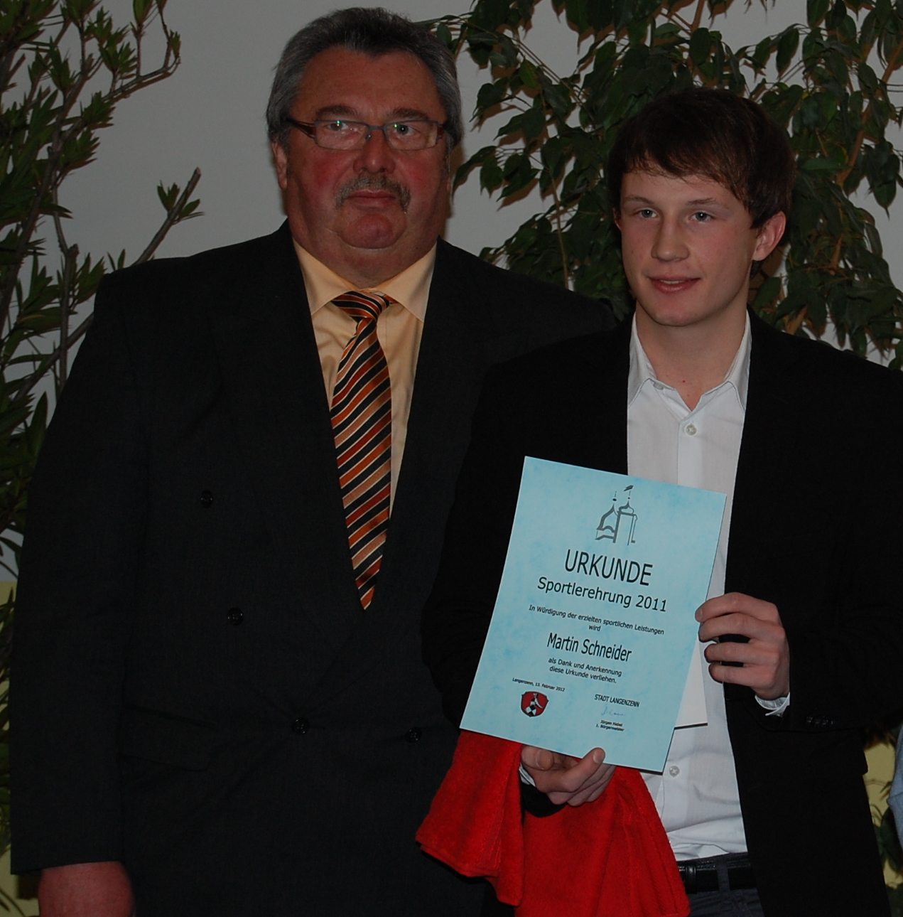 Am Montag den 13.2.2012 fand die Sportlerehrung der Stadt Langenzenn für das Jahr 2011 statt.Dabei erneut gut vertreten die Sportfreunde Laubendorf mit vier Mannschaften und Martin Schneider.Während die Juniorenmannschaften der F1, F2 und E2 samt ihren Trainern und Betreuern für ihre Erfolge auf Kleinfeld geehrt wurden, bekam unsere 2.