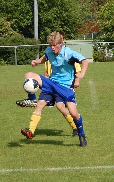 Daniel Benkert trifft zum 1:0 Markus Knies im Zweikampf Luca Horneber behauptet den Ball