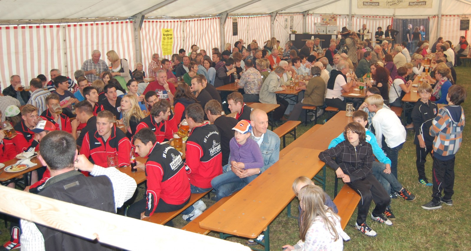 Wie auch in diesem Jahr war das Wetter der größte Unsicherheitsfaktor und bestimmte nicht nur in Lohe den gewünschten Erfolg. Der Zeltaufbau mittwochs zuvor und das Bestücken der notwendigen Einrichtung ging flott über die Bühne und so wartete am Freitag die Helferschar auf möglichst viel junges Publikum, das erneut von der Gruppe „Bad Touch“ unterhalten werden sollten. Als Vorgruppe fungierte dabei erstmals „Escape the Fallout“ mit Aktiven aus Laubendorf. Leider lag der Zuspruch mit ca. 400 Jugendlichen deutlich unter den Vorjahren. Der guten Stimmung tat dies keinen Abbruch und so wurde es wieder eine lange Nacht in einer gut gefüllten Bar in der alten Scheune. Viele Gäste fanden am Samstagabend den Weg auf den Loher Berg, darunter auch wieder eine stattliche Abordnung der Camper vom Eichensee, und verfolgten den Bieranstich von Bürgermeister Habel unter „Aufsicht“ von SFL-Vorstand Christian Gall. Es gab leckere Makrelen vom Grill und gut temperiertes Bier aus dem Hause Hofmann. Das Trio „Allmächd“ mit „Frontmann“ Olli Zweiniger sorgte wieder einmal für beste musikalische Unterhaltung und lockte immer wieder Tanzpaare auf die Bühne. Ausgeplündert wurde das Angebot an Coktails in der erneut im Festzelt integrierten Bar und so blieben viele Besucher bis nach Mitternacht. Positiv überrascht wurden die Organisatoren vom Besuch des sonntäglichen Zeltgottesdienstes mit anschließendem Mittagessen. Leider kamen damit einige Gäste nicht mehr in den Genuss des restlos ausverkauften Bratens mit Klößen. Auch am Nachmittag hielt das Wetter gut aus, so dass es sich viele Gäste auch vor dem geöffneten Zelt bequem machten. Sie bekamen ein besonderes „Schmankerl“ mit dem Auftritt der VHS-Zumba-Truppe geliefert. Die Damen zeigten mit einer fetzigen und ausdauernden Darbietung eindrucksvoll, dass sie unter der Führung ihrer LehrerinSusanne schon seit Wochen im Sportheim trainieren. Ein langanhaltender Beifall und viele bewundernde Kommentare an den Tischen war ihr verdienter Lohn. Auch konnte in diesem Jahr wieder eine Jugendmannschaft für ihren Erfolg geehrt werden, es waren die D-Junioren mit ihren Trainern und Betreuern. Danach waren die „Alten Säcke“ an der Reihe. Hier besteht ja seit vielen Jahren der Brauch, Mitglieder der „Alten Herren“ mit der Überreichung eines entsprechenden Säckchens für das Erreichen der Altersgrenze von 50 oder 60 Jahren zu ehren. In diesem Jahr waren es Helmut Sand (AS – alter Sack) und Wolfgang Sprotte( G.A.S.- ganz alter Sack) die in den „ehrbaren Club“ aufgenommen wurden. Zum Abschluss der Loher Bergkärwa wurde die Preisverleihung der vielen Losgewinner durch Vorstand Christian Gall durchgeführt. Während langjährige Besucher erneut mit ihrem Misserfolg leben mussten, gewannen andere mehrfach. Den ersten Preis, das Skiwochenende mit dem SFL-Skiclub, gewann die Familie Heidingsfelder aus Laubendorf. für einen reibungslosen Ablauf gesorgt. All den Freiwilligen aus den verschiedenen Abteilungen gilt der Dank für die geleistete Arbeit, vor allem den etwas Wenigen am Montag beim Abbau. Manfred Durlak