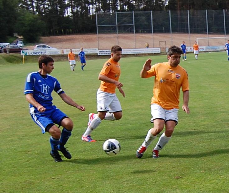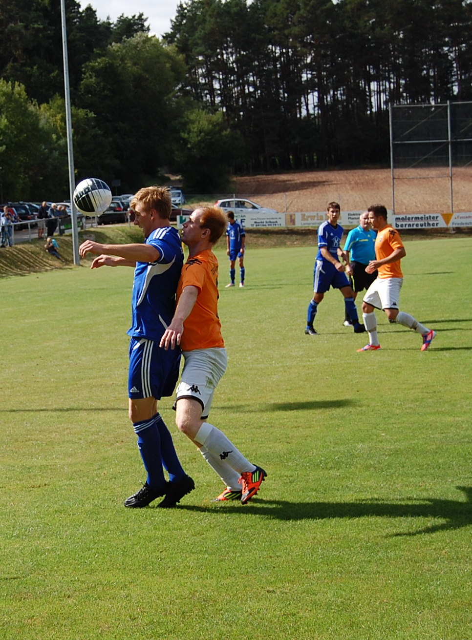 Tor des Tages durch Marcel Schramm Markus Knies versucht es gegen zwei vom TSV Johannes Keppner mit Köpfchen
