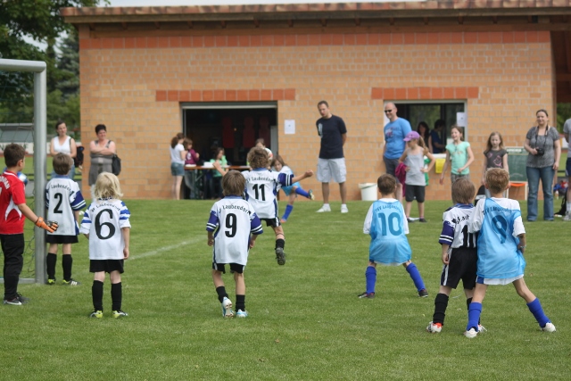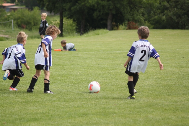 Das führte jedoch dazu, dass diesmal ein Aufgebot von 12 Spielern zur Verfügung stand. Marvin kam so zu seinem ersten Turnier und führte sich gut ein. mit einem 4:0 Kantersieg gegen TSV Neustadt/Aisch. Nach dem frühen Führungstor durch Eli waren die Neustädter chancenlos. Erneut Eli zum 2:0 gefolgt von Lewin und Leon. Corbinian hatte im Tor wenig zu tun. Dann kam das Lokalderby gegen den TSV Langenzenn. Auch die Langenzenner hatten ihr erstes Spiel gewonnen. Beide Teams gingen wie immer hochmotiviert zur Sache. Langenzenn machte von Anfang an Druck und ging sehr früh durch Falk in Führung. Nach anfänglicher Niedergeschlagenheit hellte sich die Stimmung schnell wieder auf. Langenzenn spielte nur 0:0 gegen den SV Burggrafenhof und 1:1 gegen den TSV Neustadt/Aisch. Unsere Jungs gewannen dagegen ihre restlichen Spiele souverän. Gegen die SpVgg Steinachgrund brachte Eli die Sportfreunde mit 1:0 in Führung. Nach einem Handspiel von Steinachgrund gab es einen Freistoß. Sami tippte den Ball an und Lewin schoss über alle Gegenspieler zum Endstand von 2:0 ein. 2:0 erzielten Lewin und aus dem Gewühl vor dem generischem Tor heraus, der quirlige Leon. Eli, Lewin und Elias erzielten die Treffer. toph, Sami, Elias, Lewin, Eli, Leon, Jakob, Marvin Tore: Eli 4x, Lewin 4x, Leon 2x, Elias 1x