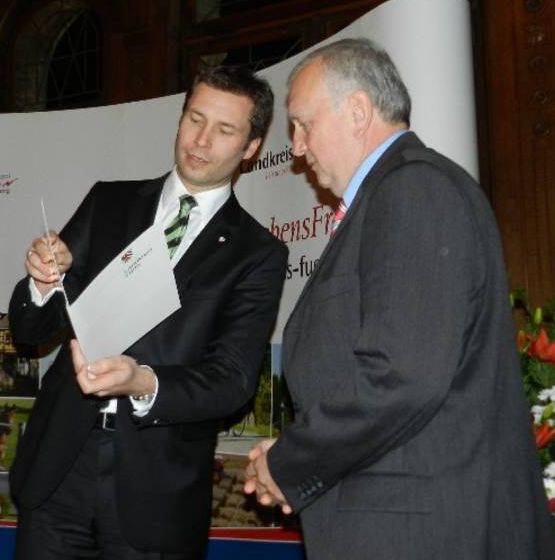 Am 5.12.2013 wurden zwei unserer Vereinsmitglieder durch den Landrat Matthias Diesel für Ihrer ehrenamtliche Tätigkeit im Schloss Faber Castell geehrt.Zum einen unser Ehrenvorstand Bernhard Jakob, der für über 30-jähriges ehrenamtliches Engagement die Ehrennadel in Silber überreicht bekommen hat.